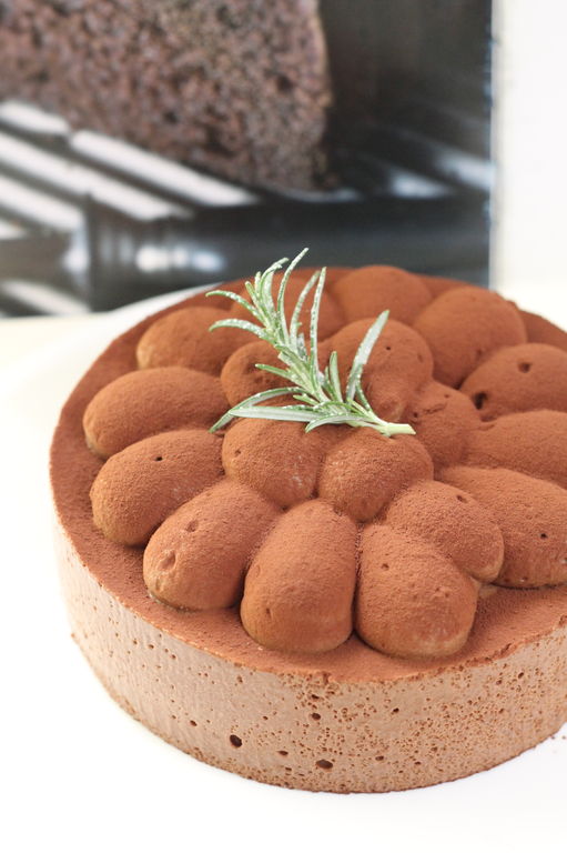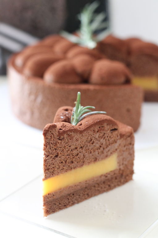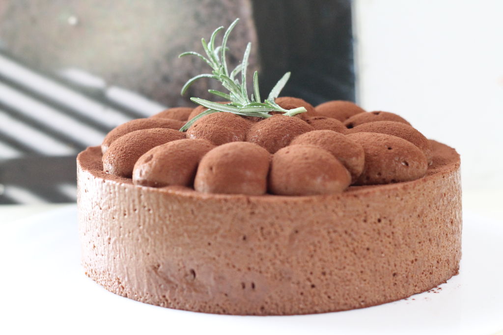 そのケーキのトップの魅力的な絞りは、クリームではなくて、下と同じチョコレートムースでした。