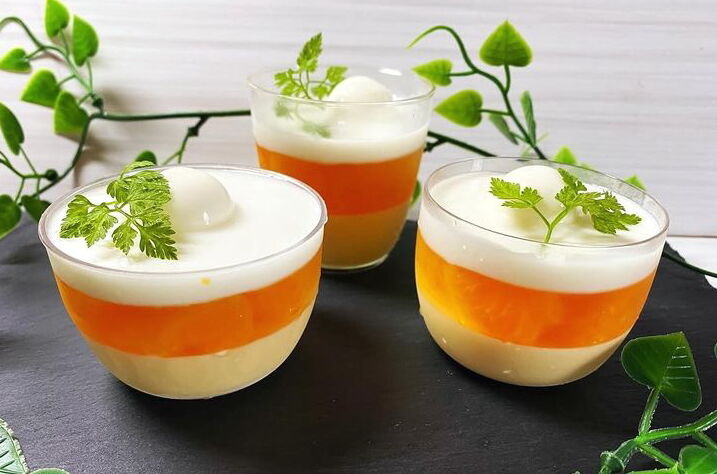 2種類のゼリーを重ねますが、